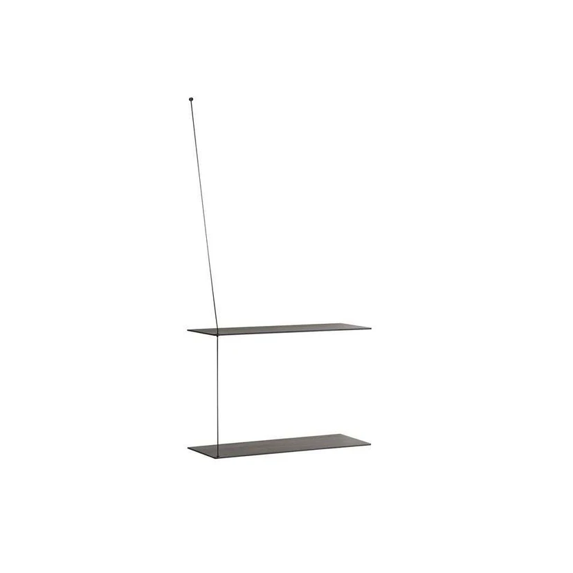 Stedge Shelf Small Black is a minimalist shelving unit with a light and simple design and a transparent structure. The robust shelves appear to hang from a thread—the optical illusion creates a moment of wonder as the beholder ponders how such a thing is possible. Stedge Shelf comes with two shelves. If you want to expand your shelving unit with a shelf or two, you have the option to buy the.