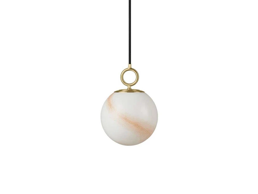 Stockholm Pendant Ø18 Marble Brown represents a careful exploration of materials and aesthetics, bringing to life a unique collection of lights. The Stockholm collection consists of pendant lights and cordless table lamps in a variety of beautiful versions, all characterised by the same consistent design: the lampshade is made of opal glass but with a beautiful marble optic and fine surface patterns that add a subtle pop of colour to the ensemble. The spherical shape has a decorative effect and gives the lamp a stylish design language where nothing can be added or subtracted. In a harmonious complement to the opal shade, the frame has a brass finish that gives the lamp a classic elegance.