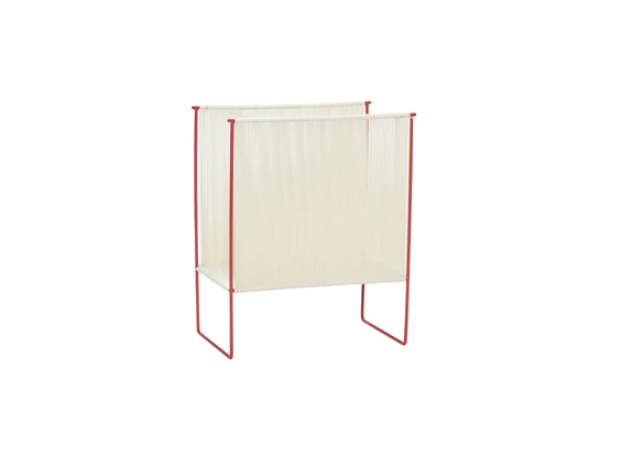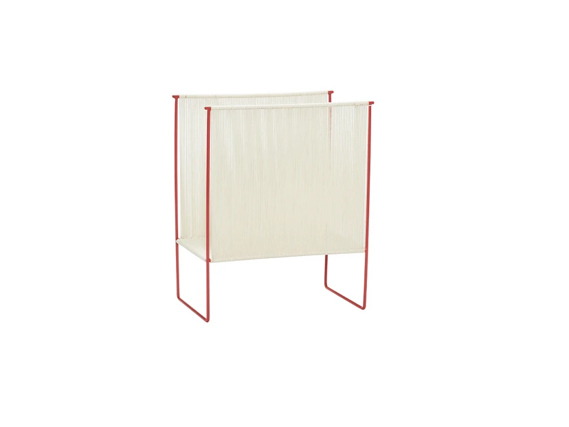 The String Magazine Holder Red/White is a practical addition to the waiting room, bathroom and office. With its beautiful design in woven cotton textile and creamy white colour, the String Magazine Holder presents a practical piece of interior with a visually appealing look that beautifies the overall decor with a special design-oriented touch. The fabric is thin but durable and can hold many magazines at once. At the same time, the fabric is semi-transparent so you can see the front of the front leaf - a practical touch to the stylish design. As a nice extra addition, the metal frame is lacquered in a striking red colour that catches the eye and beautifully frames the design.