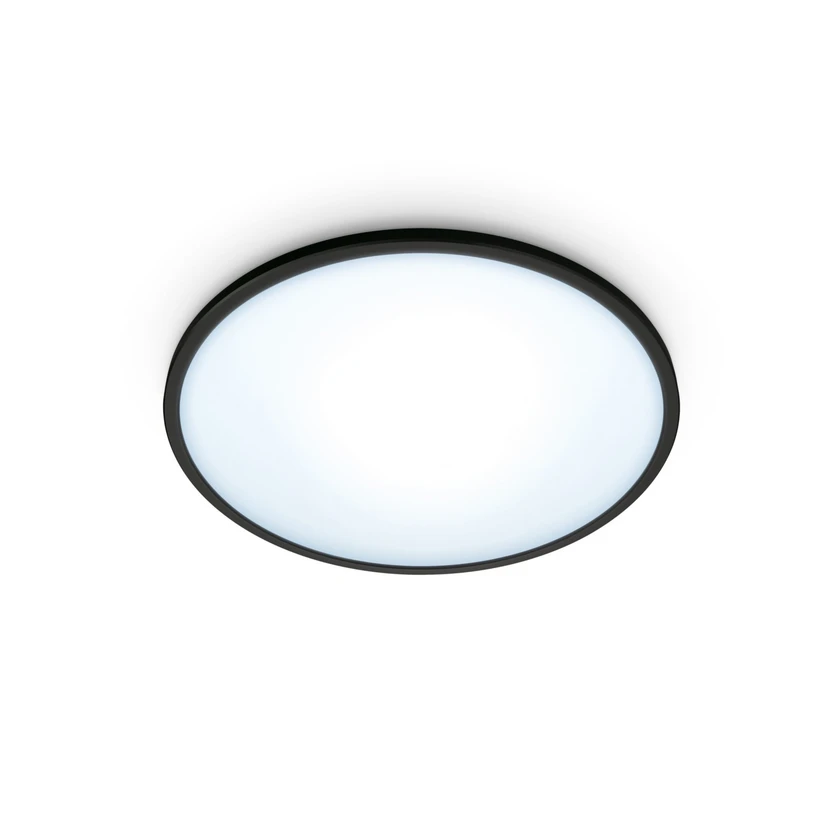 The SuperSlim WiZ Ceiling Light offers a wealth of different functions and options with smart settings and intelligent control presented in a simple, minimalist design that is designed to fit into any interior. The ceiling light has a circular shape with an opal white matt cover that ensures a soft and uniform glow. The light source is a built-in LED that shines efficiently and provides diffused lighting in the room.