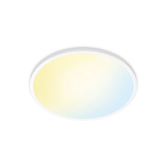 The SuperSlim WiZ Ceiling Light offers a wealth of different functions and options with smart settings and intelligent control presented in a simple, minimalist design that is designed to fit into any interior. The ceiling light has a circular shape with an opal white matt cover that ensures a soft and uniform glow. The light source is a built-in LED that shines efficiently and provides diffused lighting in the room.