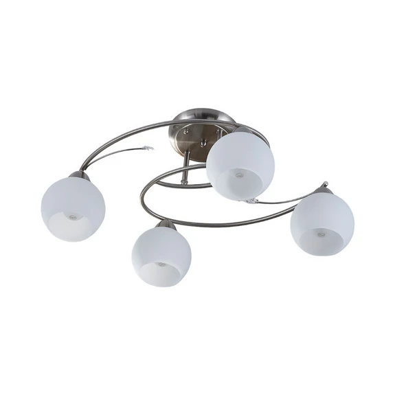 Svean 4 Ceiling Lamp White/Nickel XX almost looks like a rosebush with its lovely combination of swirls on the frame and delicate round glass lampshade. This expression is amplified by four leaf-shaped glass ornaments by the lampshade, which contribute a romantic, light, and modern look.