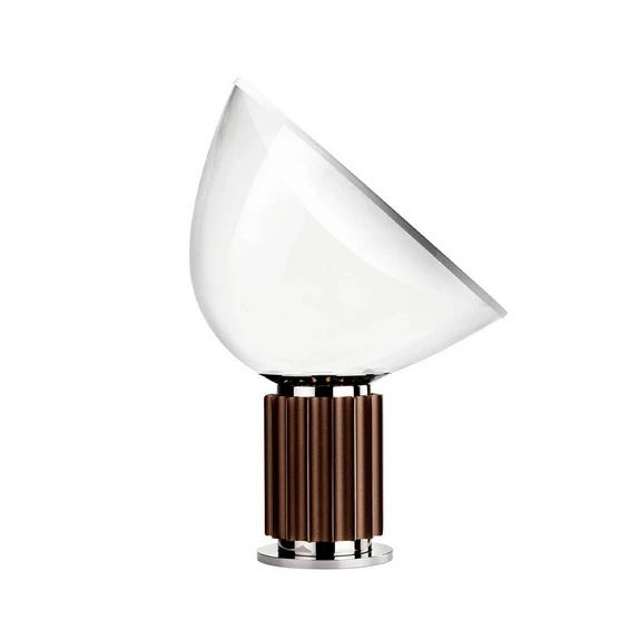 The Taccia LED (PMMA) Bronze Table Lamp from Flos is the perfect addition to your home when you want a stylish and functional lighting solution. This table lamp, also known as a desk lamp, combines elegant design with practical features. With a height of 64.5 cm and a diameter of 49.5 cm, it fits perfectly into both modern and classic interiors. The body of the lamp is made of anodised aluminium in a beautiful bronze colour, while the reflector is made of painted aluminium with a glossy white exterior and a matt white interior. The directional diffuser in mouth-blown glass ensures pleasant indirect lighting. The base is nickel-plated metal and the lamp has a 220 cm long electric cable with a dimmer switch that allows you to adjust the brightness from 10-100%. Discover how this lamp can transform your space with its sophisticated charm and functionality.