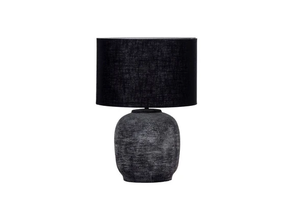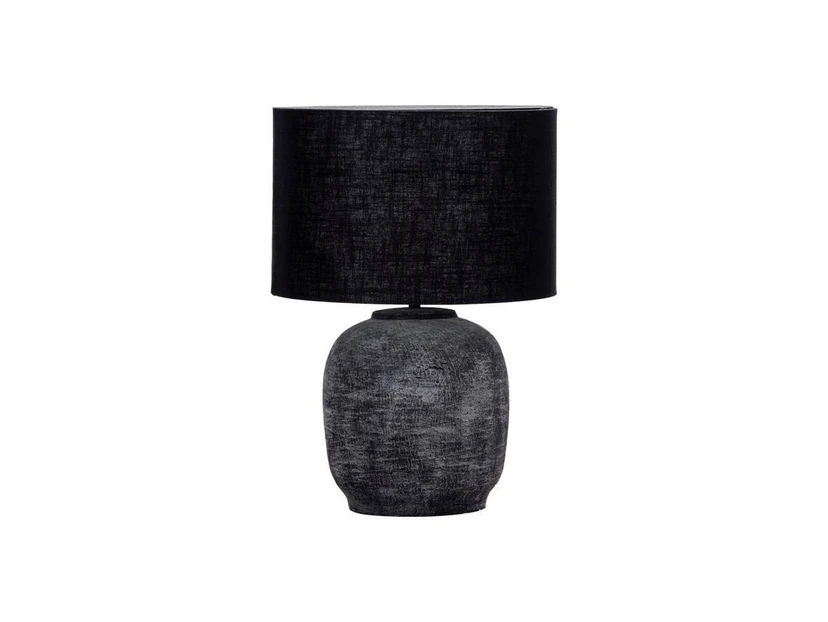 The lamp has a classic cylindrical lampshade in black textile that matches the dark clay base and at the same time ensures a pleasant, diffused light emission, making the lamp a nice accent lighting in the living room as well as the bedroom. The light shines both directly through an opening at the top and bottom and through the lampshade itself.
