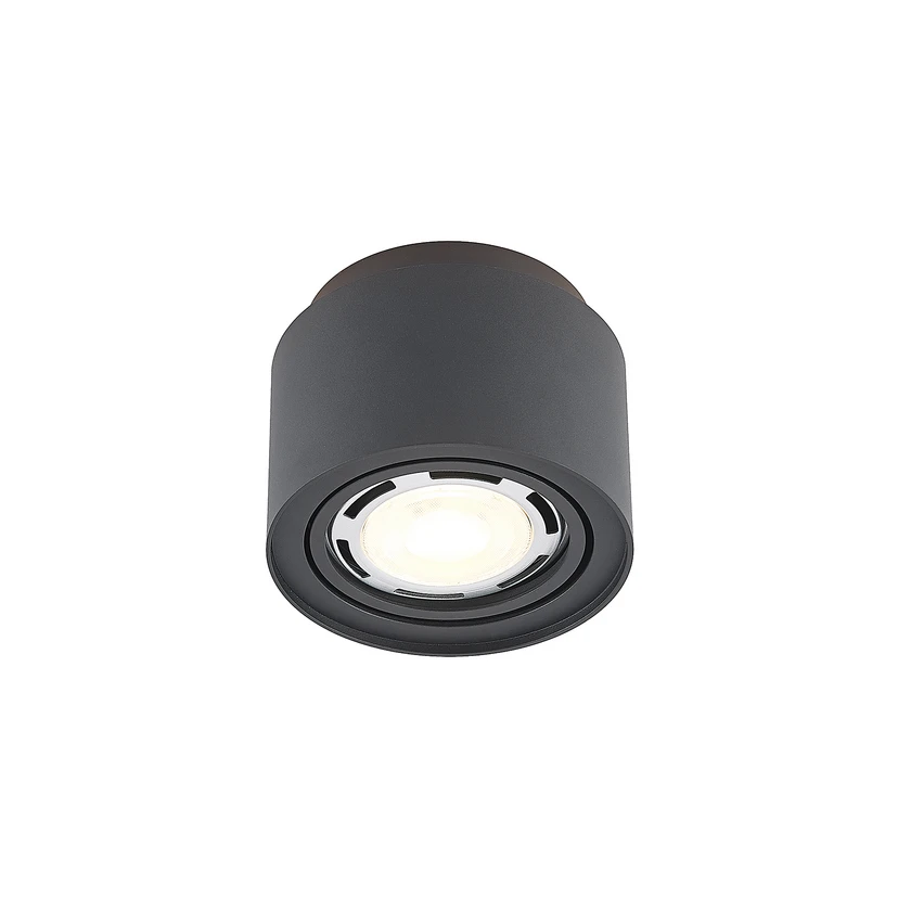 Talima Ceiling Lamp Black lights up the room with not just one but two light sources. The lamp is shaped like a classic mounted spot with a cylindrical body and matching ceiling bracket but with a light output at both ends. When the lamp is on, the light shines out of the cover on the bottom of the fixture for a practical downlight, all while projecting a harmonious glow onto the ceiling, creating a combined direct and indirect light.