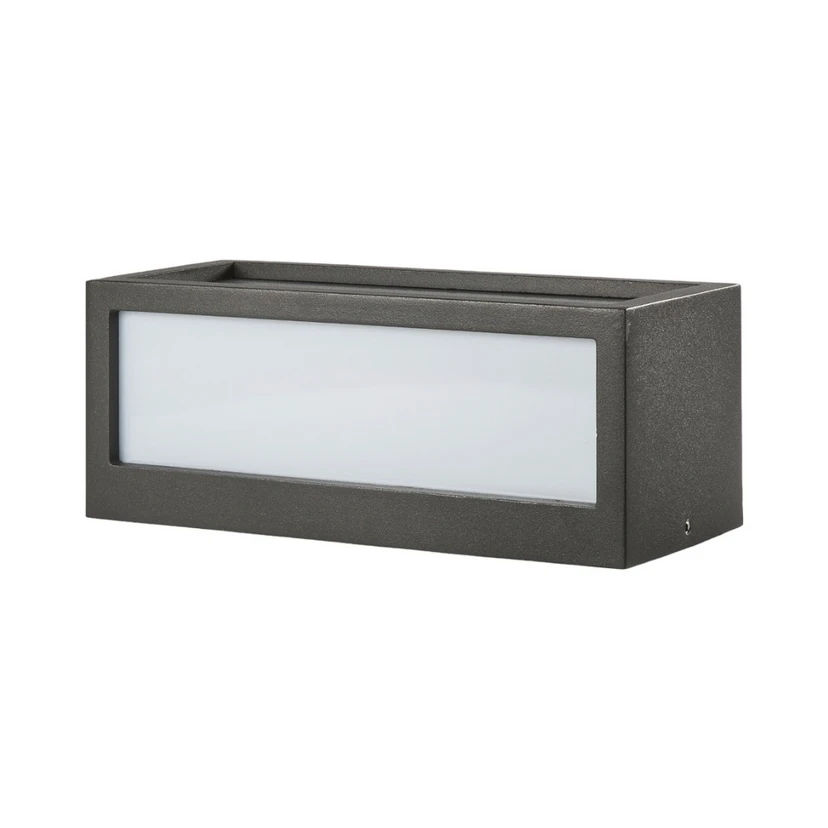 The design consists of a graphite grey aluminium body with wide polycarbonate inserts that are better fit to withstand the elements than glass inserts. The lamp boasts an IP54 rating, making it resistant to dirt and spray, so you can use it outdoors year round.