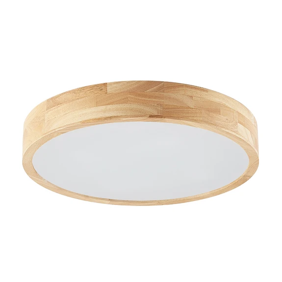 Tanju Ceiling Light Wood/White Ø50 presents itself in a simple, neat design that immediately brightens up the room. The lamp has a classic cylindrical shape without unnecessary details to disturb the beautiful, clean lines. The exterior is clad in light-coloured oak, which gives the design a natural look and makes this model ideal for interiors inspired by Scandinavian style. At the bottom is a matt white plastic cover that shields the light source. The white colour ensures that large amounts of light can escape, while the matte surface disperses the light and makes it appear soft and beautiful.