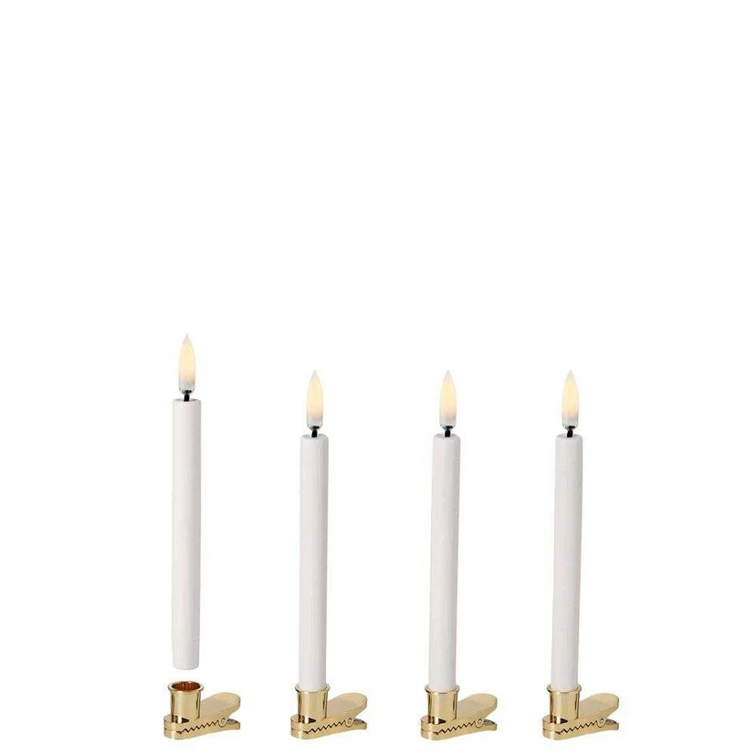 Chandelier Mini LED Nordic White 4 pcs w/clips 1,3 x 13 cm has a unique 3D flame that resembles the flame of a traditional candle. Thanks to LED technology, Uyuni Lighting has created a series of LED candles that resemble a living flame that stands and flickers gently. The flame has no physical movement, so you don't have to use electricity to keep it moving.