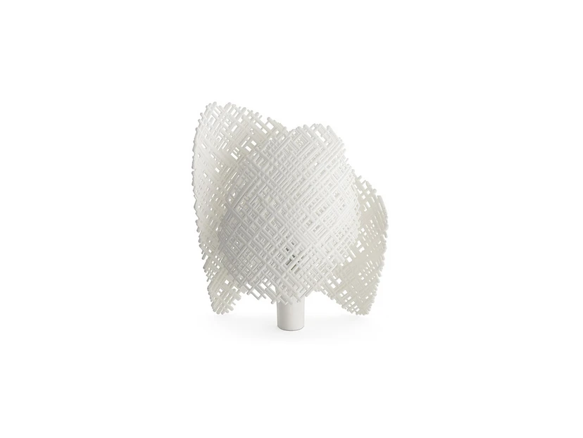 Tea Table Lamp White is an artistic creation with an eye-catching design that creates a beautiful and cosy light scene. The lampshade is made up of leaf-shaped elements that are composed of a detailed, irregular wickerwork pattern that allows the light to shine out selectively. When switched on, the inside of the lampshade lights up in an indirect glow that beautifully complements the direct uplight from the light outlet at the top of the lamp. This type of light is ideal for supplementing the main lighting in the room. The lampshade also covers the light source to avoid glare.