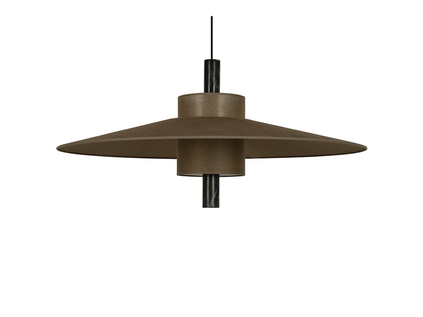 Thesee Pendant Light L Tonka by Forestier is a pendant light that unites simplicity and elegance in your home. This beautiful lamp is part of David Fabbri's debut collection inspired by modern painting and minimalist design. With its unique combination of natural linen and black marble details, the Thesee Pendant L Tonka brings a touch of artistic flair to any room. It was created in collaboration with skilled craftsman Kasia Woznica-Raulin, who is known for her expertise in natural colouring. Each lamp is therefore a unique work of art that reflects a perfect balance between design and craftsmanship. This large pendant light in multi and brown colour is ideal for creating a warm and inviting atmosphere in the living room, dining room or any other room where you want to add a touch of timeless beauty.