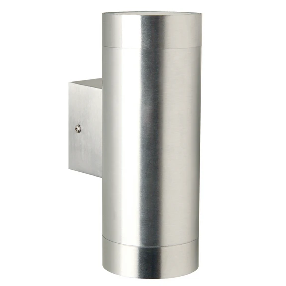 The Tin Maxi Double Wall Light Aluminium presents itself in a simple and modern design that you will never get tired of. The simplistic shape that characterises all the lights from the Tin series makes the wall light a versatile model that quickly finds its place on the facade or by the front door. The lamp has a classic cylindrical shape with a simple, monochrome surface. Thanks to the high protection class (IP54), the lamp is protected against the effects of wind and weather. The luminaire is stainless, but it is recommended to apply an acid-free oil 3-4 times a year.
