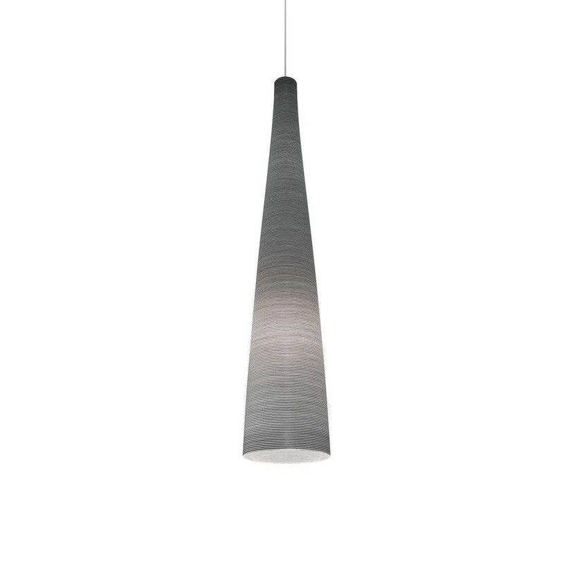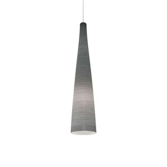 Tite 1 Pendant Striped 2m is a cleverly arranged lamp with an eye-catching design. The shade is made from a mixture of fiberglass and carbon wire in a dense spiral pattern, which together form a soft and elongated bulb shape that acts as both a graphic decoration and a functional frame for the light source. When you turn on the lamp, the light gradually spreads out more and more in the lower half in a beautiful glow that shines evenly in a 360-degree angle. The shade is open at the bottom, so the light can penetrate directly and shine brightly onto the area under the lamp. This makes it ideal for placing the pendant over tables and other surfaces that need good, yet stylish lighting.