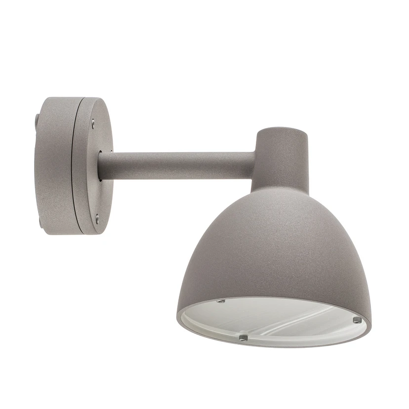 The Toldbod 155 outdoor wall lamp in grey emits a concentrated downward-facing light without glare. On the inside, the fixture is painted white in order to maximise light production.