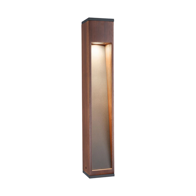Trabia Garden Light H60 Wood combines aesthetics, functionality and fantastic light effects in a beautiful natural design that beautifies the area and creates pleasant lighting in the outdoor area. The luminaire is made partly of black lacquered metal and partly of dark wood in a simple, elongated design with clean lines and right angles. The simplicity of the shape makes it ideal for mounting several lights in a row if you want to illuminate larger areas, for example on paths or along the driveway. As the luminaire has an IP44 rating, it can withstand rain and moisture without damage. The light bulb is mounted under the top of the lamp. From here it shines down the prism-shaped notch on the front of the lamp, providing only indirect light that never dazzles, but is still bright enough to be an excellent orientation light in the evening