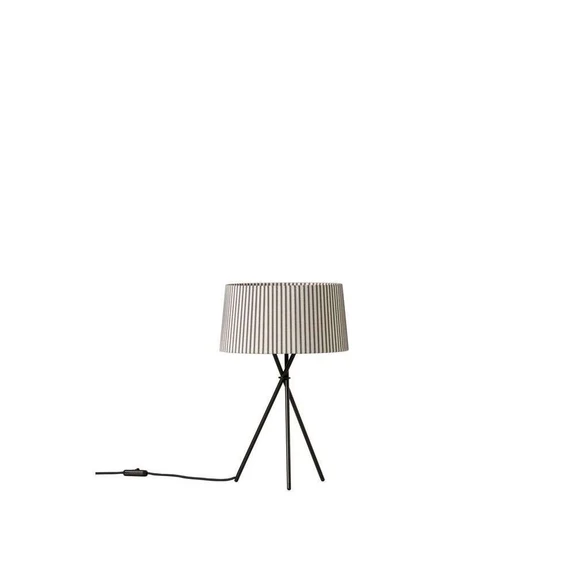Trípode M3 Table Lamp Bretona/Black was designed in 1997, based on the GT5 pendant from 1994. The unique lampshade of handmade cotton tape is at once classic and dramatic in its design. When the lamp is on, it provides a warm cosy light, and when the lamp is off, it serves as a sculptural addition to your décor.