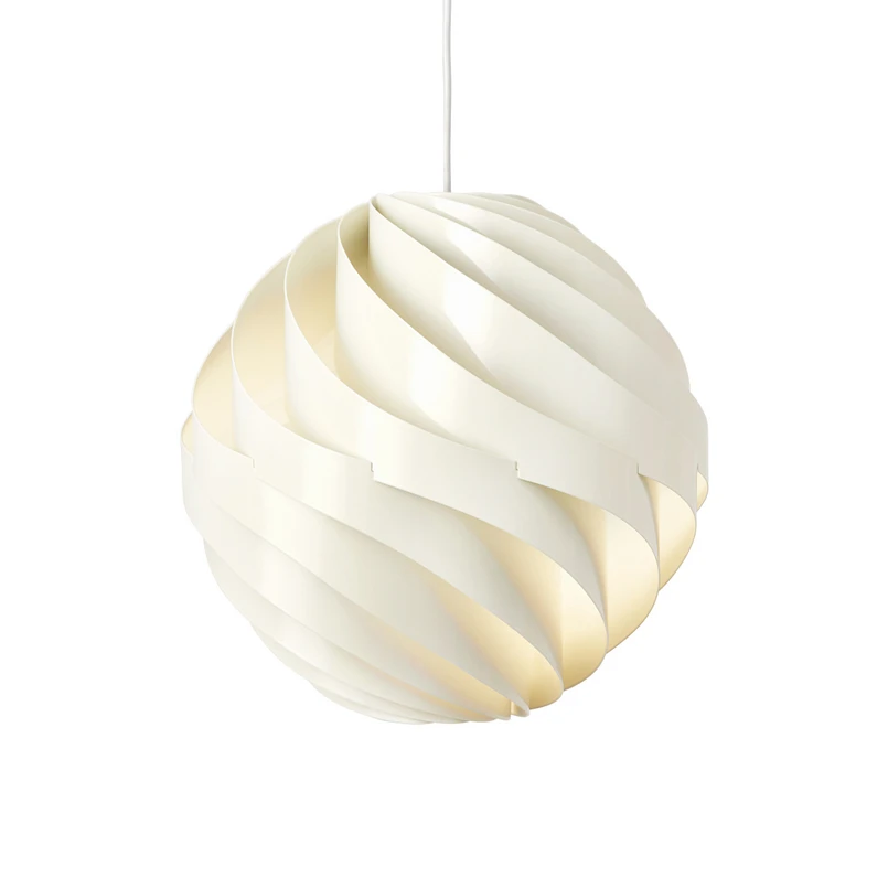 The Turbo Pendant Ø36 Glossy Alabaster White/White was designed by Louis Weisdorf in 1965, but wasn’t manufactured for the first time until 1967. It has achieved great success throughout the years as it epitomises great design. It offers a simple shape containing a complicated structure. Furthermore, it combines the feelings of lightness and strength into one sculptural whole.