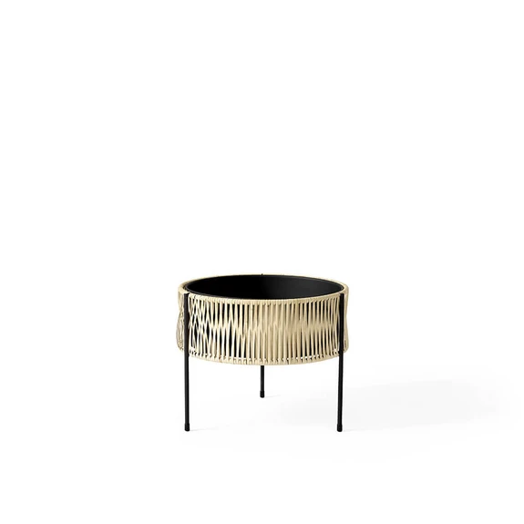 The Umanoff Planters collection comes in three sizes, all with the same lovely design. Thin rattan threads are woven by hand to give the pot an airy and organic expression. Below the rattan weaved basket, the pot’s powder-coated legs reach for the floor, creating a solid foundation for the flowerpot.