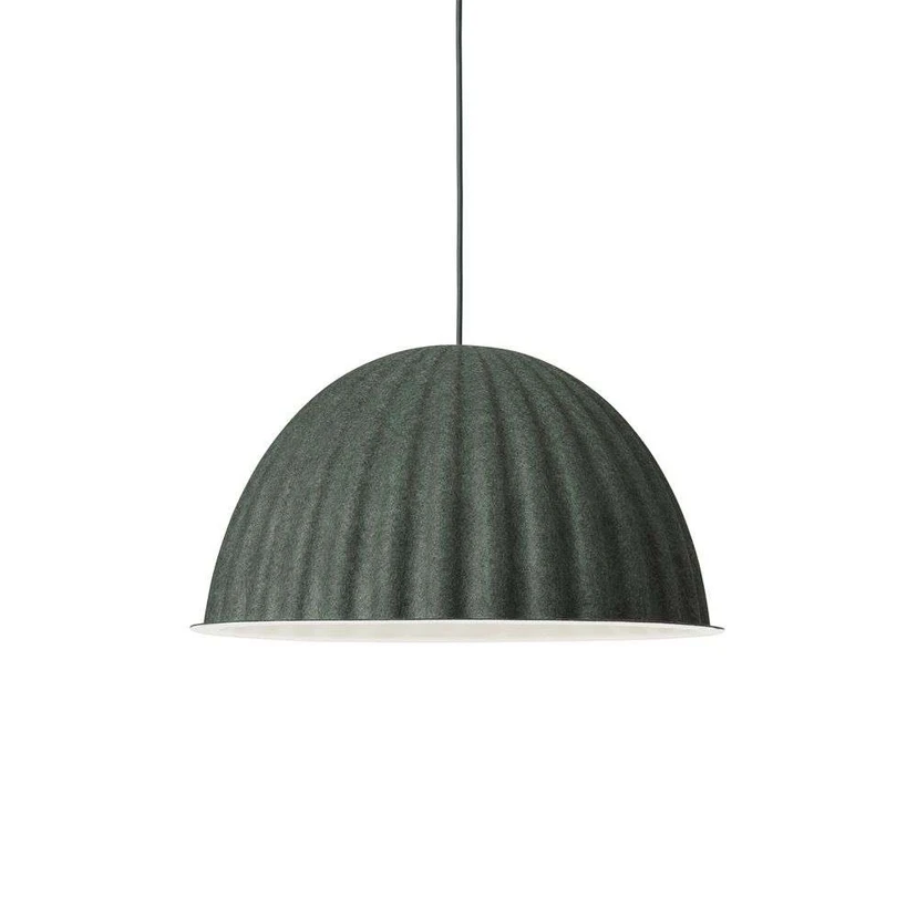 The Under The Bell pendant is manufactured using felt, which is a product of recycled plastic. This helps ensure a soft expression and quality ambient illumination, and it also improves the acoustics of the room.