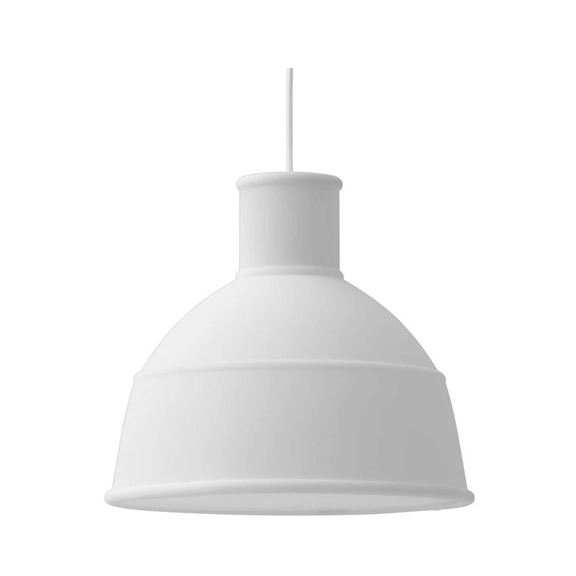 Unfold Pendant Light Translucent White from Muuto is a modern interpretation of the classic industrial pendant light. This unique lamp is made of flexible silicone rubber, giving it a soft and playful expression. The clear colour creates a subtle and pleasant lighting that fits perfectly in both home, office and hospitality environments. Measuring h28.5 x w32.5 x d32.5 cm, it is ideal for creating a warm and inviting atmosphere in any room.