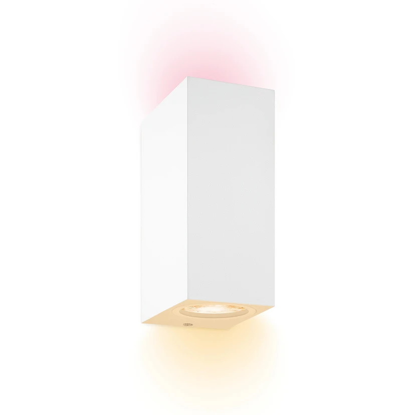 Up&Down WiZ 2 Wall light RGB is similar in appearance to the conventional wall light. The box-shaped luminaire, circular light outputs and monochrome colour scheme blend easily into the decor. However, the wall light impresses with a wealth of smart features that exceed your wildest expectations of home lighting.