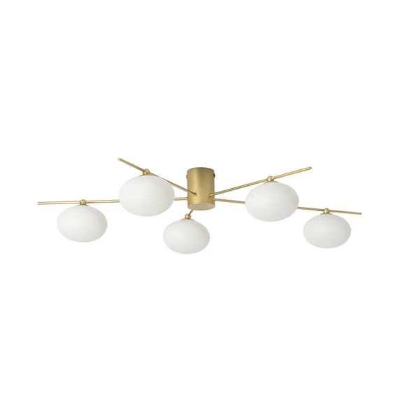 The Valisa 5 Ceiling Light Gold from Lindby is the perfect addition to your home if you want to combine elegance with functionality. This ceiling light, also known as a pendant light, is made of iron and glass, ensuring a robust and stylish construction. The golden colour adds a touch of luxury to any room, while its dimensions of 15 cm in height, 72.7 cm in length and 52.9 cm in width make it an eye-catching element in both living rooms and bedrooms. Valisa 5 is designed to provide a pleasant and even light that creates an inviting atmosphere. Whether you want to illuminate a cosy corner in the living room or create a relaxing atmosphere in the bedroom, this lamp is an ideal choice. Make your home more inviting with this beautiful lamp from Lindby.