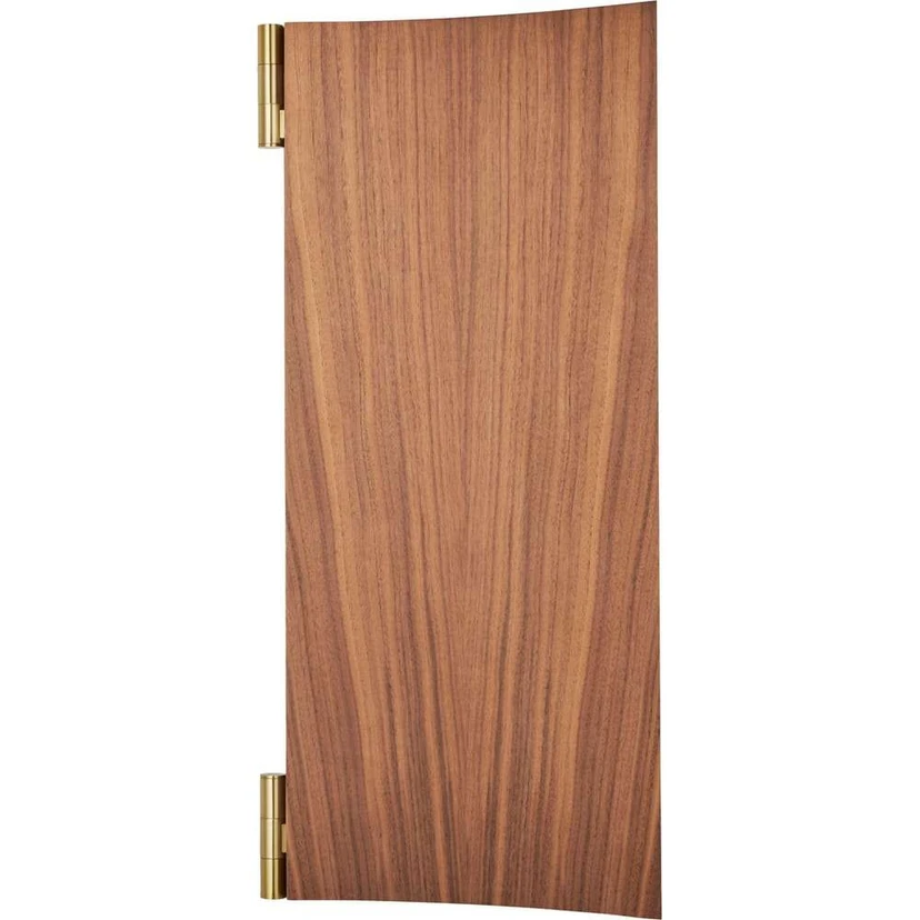 The Vanity Wall Mirror 2 is a contemporary echo of the popular 18th century vanity mirror in a new, refreshed version with a beautiful aesthetic that is both a practical and decorative addition to many rooms in the home. The mirror's back and frame are made of walnut veneer, which adds a beautiful, organic touch to the mirror. The natural material gives the design a warm feel that is only enhanced by the shiny brass hinges, which also allow you to adjust the mirror in relation to the wall so you can view your reflection from multiple angles.