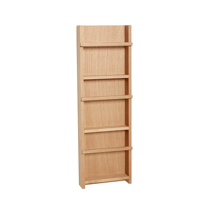 The Vertigo Magazine Rack Natur from Hübsch is the perfect addition to your home if you want to organise your magazines in style. Made from FSC®-certified oak veneer and oak wood, this elegant magazine rack combines functionality with a timeless design. The natural colour and clean lines make it a versatile home accessory that fits into any decor. With a height of 105 cm, a depth of 11 cm and a length of 34 cm, this magazine rack is both spacious and space-saving. It is ideal for keeping your favourite magazines, newspapers or books organised and easily accessible, while adding a touch of Scandinavian elegance to your home. Hübsch has created a product that is not only practical but also sustainable, thanks to the use of certified wood. Make your home more stylish and organised with this beautiful magazine rack.