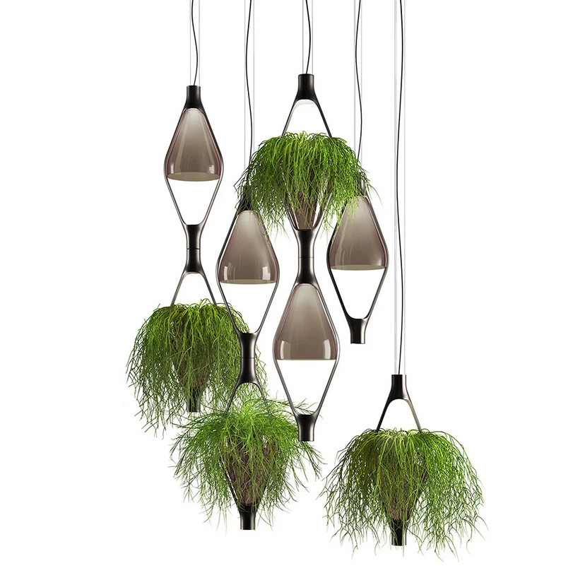 If you mount the glass lampshade on the top, it creates a lovely downlight. If you turn it around, it becomes a bowl that you can use to display a houseplant. When the lamp is on, it bathes the plant in a muted glow. Viceversa looks stunning paired with its siblings and placed on stairs or in the reception. No matter where you place it, the lamp is guaranteed to command attention.