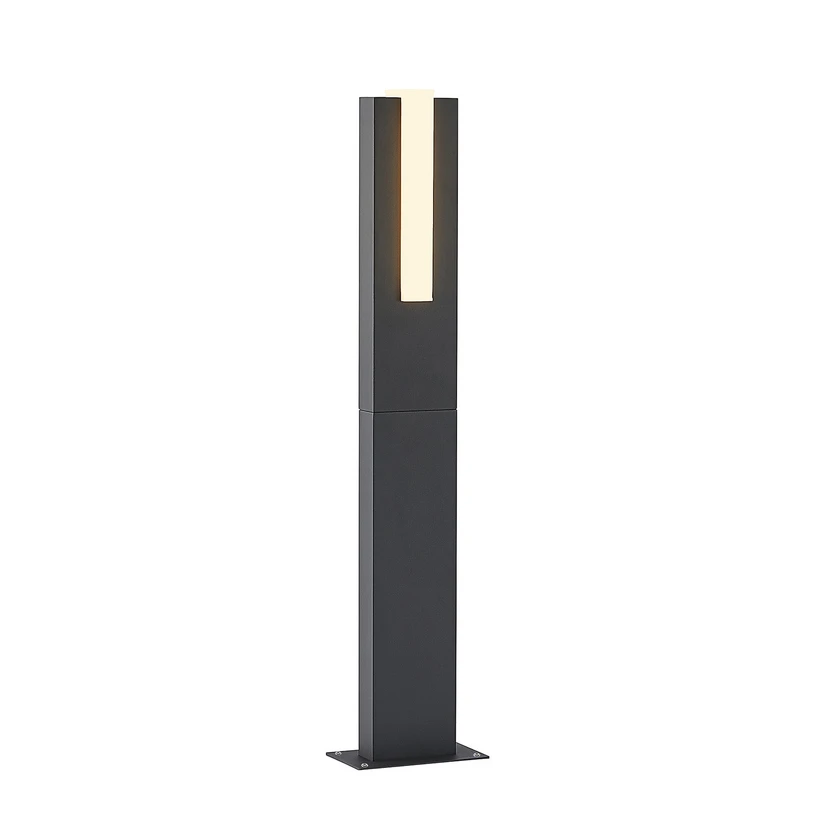 The Virgalia collection is home to garden lamps of various sizes and wall lamps with and without sensors. What they all have in common is a smart design consisting of a slim square body, the middle of which features a cut that makes up the light source.
