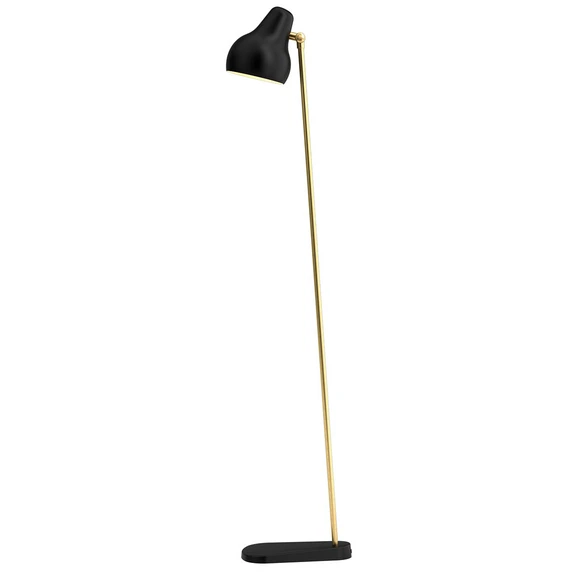 The VL38 floor lamp in black is part of the VL38 collection, which also consists of a table and wall lamp. It is based on the original table lamp used in studios in Radiohuset (the former headquarters of DR, the Danish national broadcaster) since 1945.