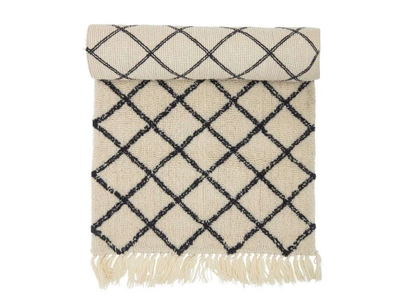 Warda Rug Nature Wool is a cosy and stylish addition to the interior in equal measure. The rich cream shade and the intricate and regular grid pattern on the upper side make the rug easy to fit into many different colour schemes. The natural colour adds warmth to the surroundings and is also a grateful shade when it comes to patina and wear, so the rug still looks good after years of use. Two of the ends are fringed, adding a casual touch to the elegant design. The rug is made entirely of wool. The hard-wearing natural material gives the rug excellent durability and makes it a pleasant experience to walk on. With a width of 70 cm. and a length of 200 cm. the rug can be used as a runner in the hallway and corridor or next to the bed.