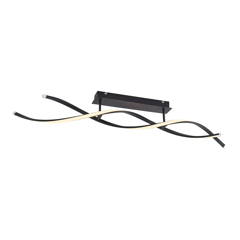 Welina LED Matt Black Ceiling Light is the perfect lamp to enrich the modern interior with more elegance. The lamp's wavy design is relatively simple yet characterful and dynamic, while the black and white colour scheme and the absence of unnecessary details give the lamp a minimalist feel and make it easy to integrate into the room. The two light elements have a matt black surface on one side, while the other side is dominated by an LED module that runs in a band along the entire structure. When the lamp is switched on, the beautiful shape is emphasised. The LEDs emit a warm white light that reaches all sides thanks to the harmonious spiral structure.
