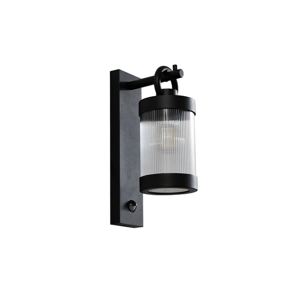 Yrene Fluted Outdoor Wall Light w/Sensor Black - Lindby is the ideal solution for those who want to combine style and functionality in their outdoor lighting. This elegant and modern wall light from Lindby is designed to enhance the look of your terrace or balcony while providing practical lighting. With a built-in motion sensor, the light switches on automatically when motion is detected, increasing security around your home. Made from durable aluminium and plastic, this black and clear lamp is both robust and weatherproof, ensuring long-lasting use. Measuring 12.6 cm in width, 35.0 cm in height and 18.8 cm in depth, it fits perfectly on most outdoor walls. Make your outdoor space more inviting and safe with this stylish outdoor light that doubles as a decorative wall light.