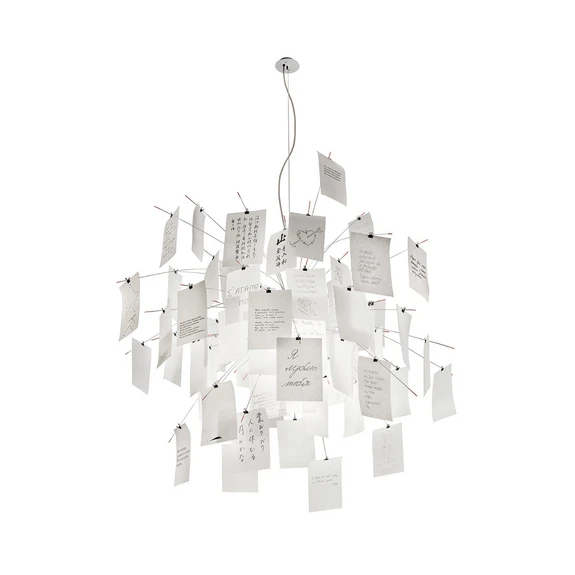 The Zettel’z 5 Pendant is one of the most famous Ingo Maurer lamps, intended to be a three-dimensional notice board. Decorate your lamp with images or short greetings – the only limit is your imagination.